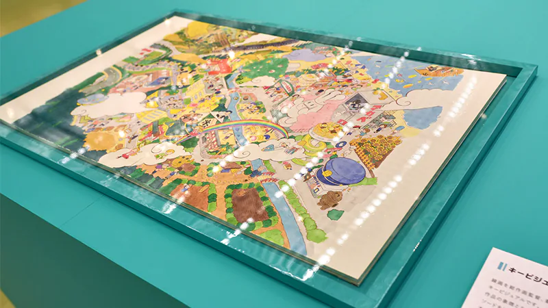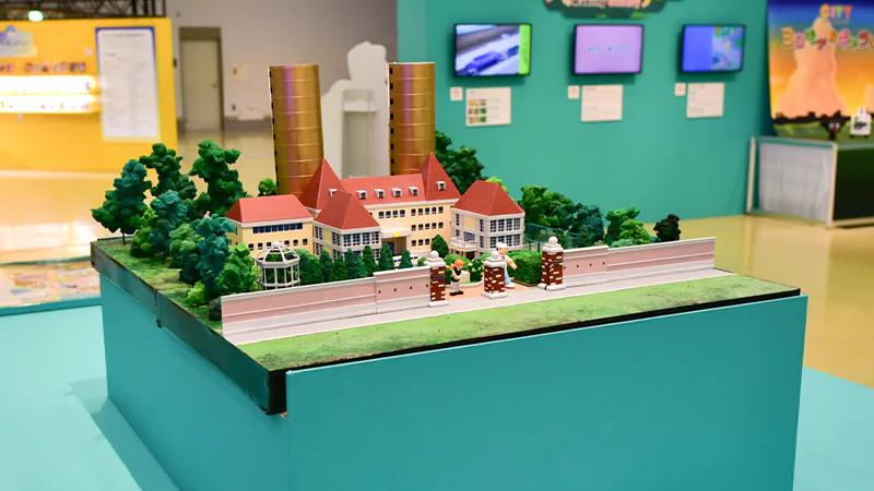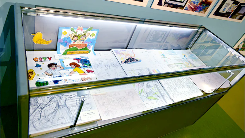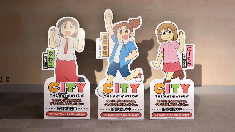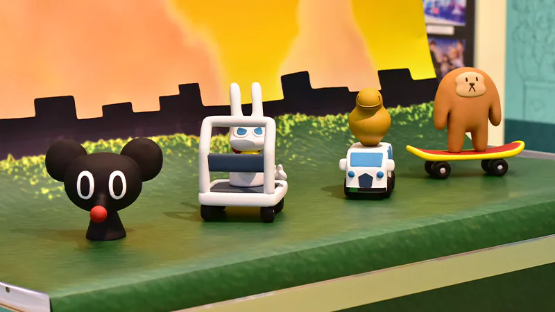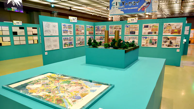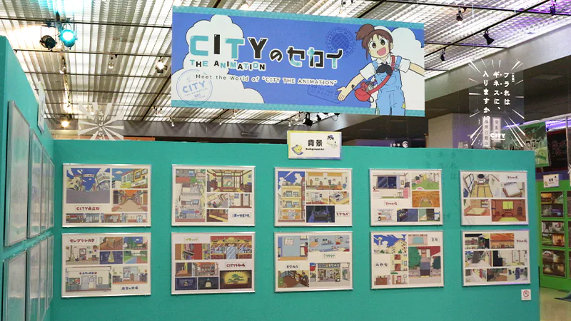 その他、『CITY THE ANIMATION』からはアニメ本編の実写パートで使用された「ジオラマ」の実物を展示。また作画監督・美術監督による手描きの「キービジュアル第2弾」や、エンディングで登場した3DCGのキャラクターたちを立体化したフィギュア展示も行われました。