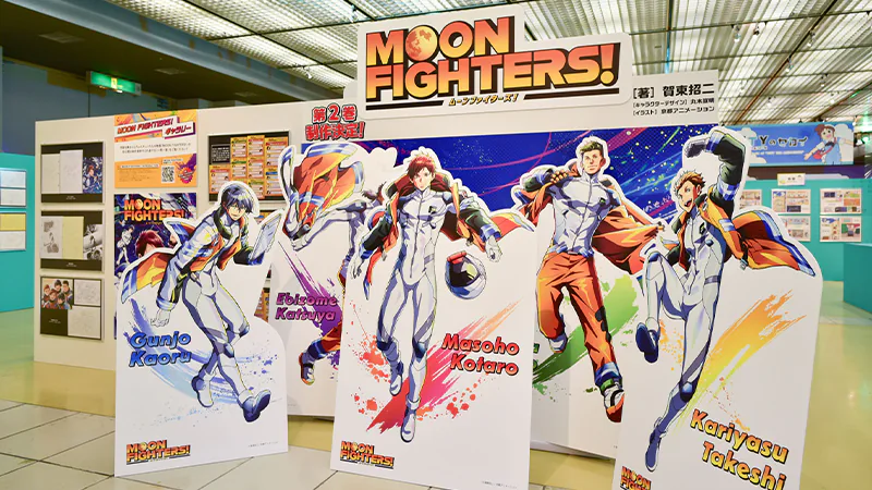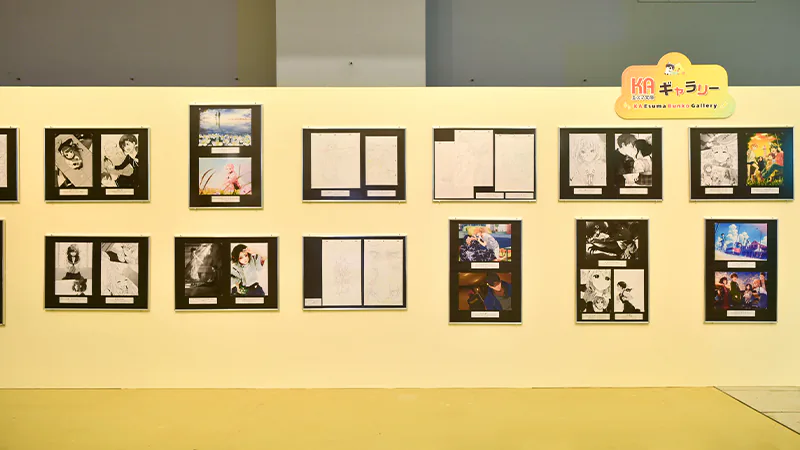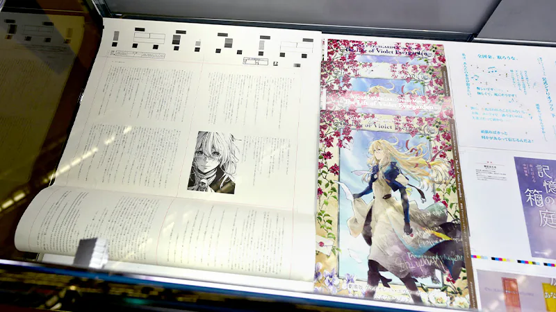 京都アニメーションの文庫レーベル「KAエスマ文庫」の紹介コーナー。直近の文庫作品『記憶の箱庭』、『草原の輝き』、『MOON FIGHTERS!』の特別展示のほか、『ヴァイオレット・エヴァーガーデン』をはじめとする歴代のKAエスマ文庫作品やその制作資料・販促物が展示されました。