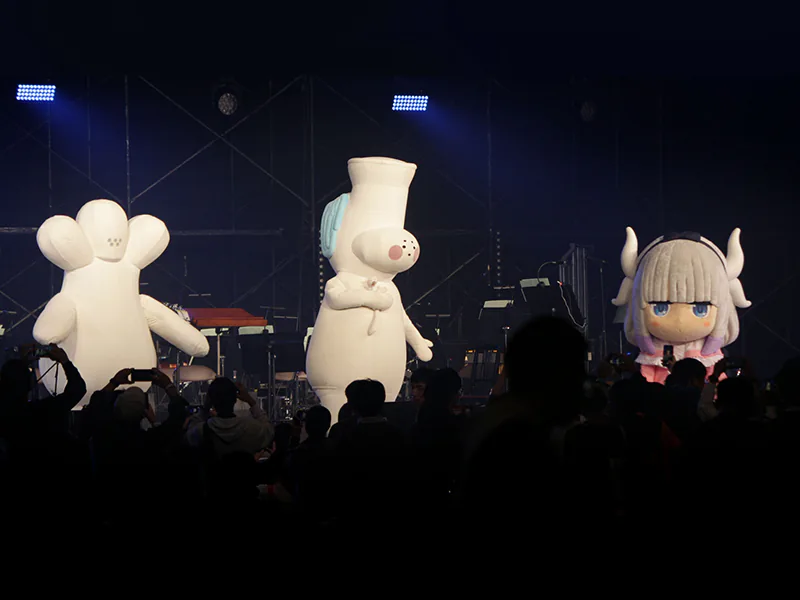 そして、各コーナーの幕間にはチューバくん(『響け!ユーフォニアム』シリーズ)、カンナちゃん(『小林さんちのメイドラゴン』シリーズ)、マカベェ発注ミスVer.(『CITY THE ANIMATION』)も登壇。可愛いマスコットキャラクターたちの撮影会も行われました。