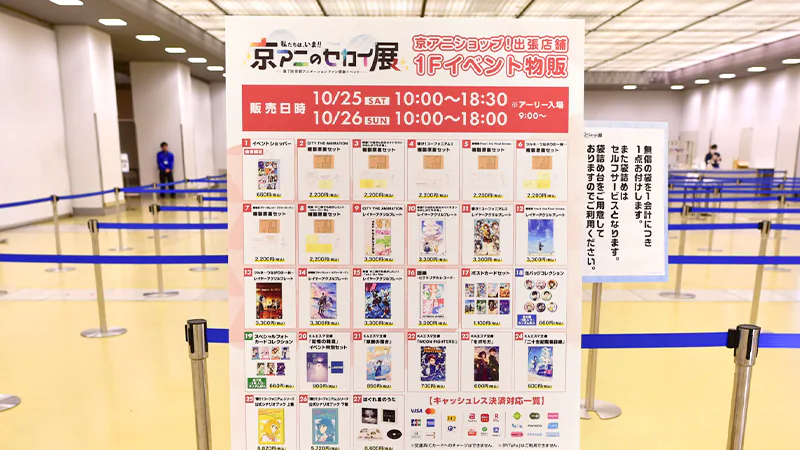 イベント物販(1F)では本イベント用の新商品を中心に販売。特設物販(3F)ではこれまでに販売された京都アニメーションオリジナルグッズをご用意し、ご購入の方に「特典カード」が配布されました。